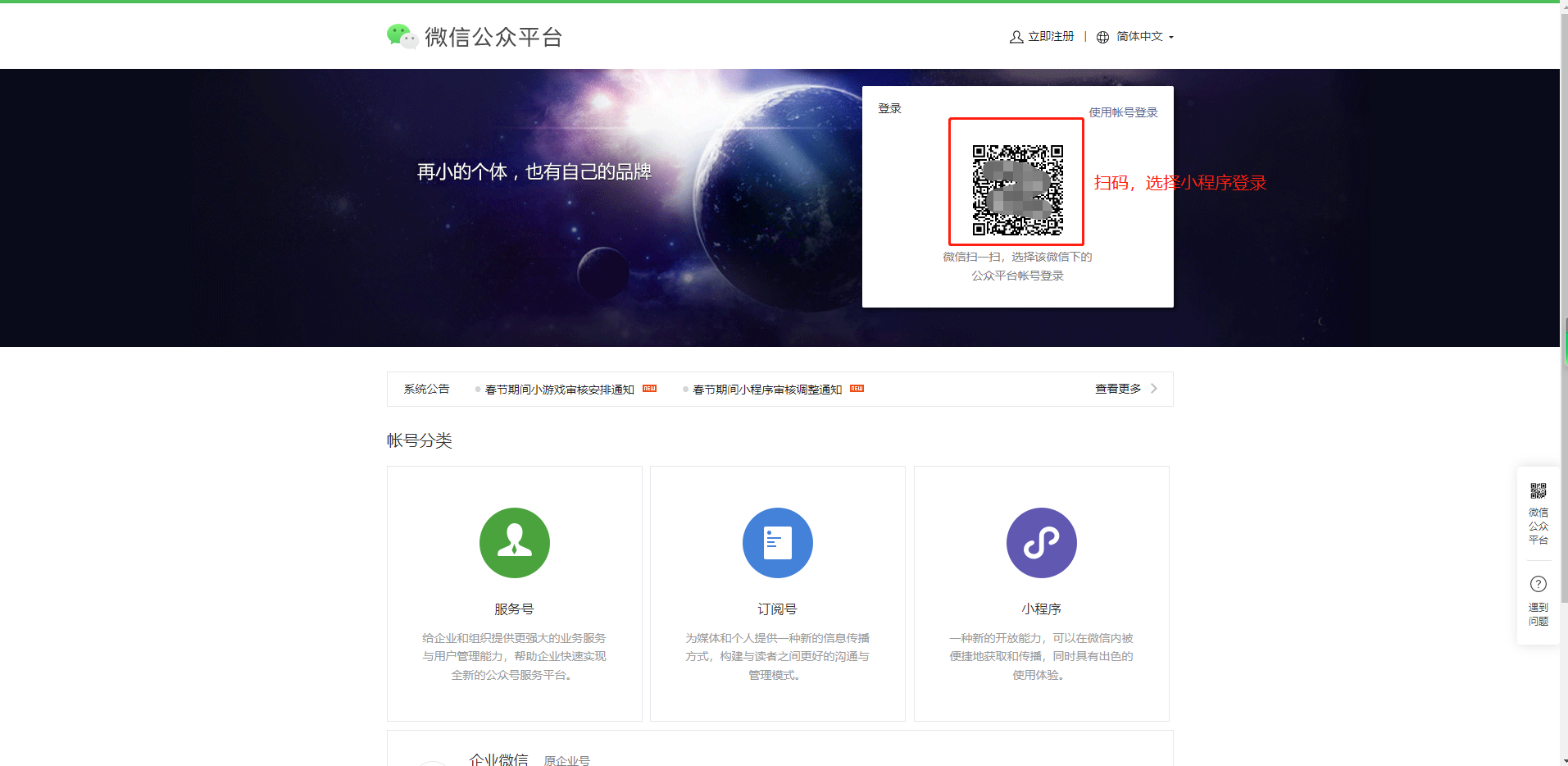 1:进入公众平台https://mp.weixin.qq.com/,选择小程序登录
