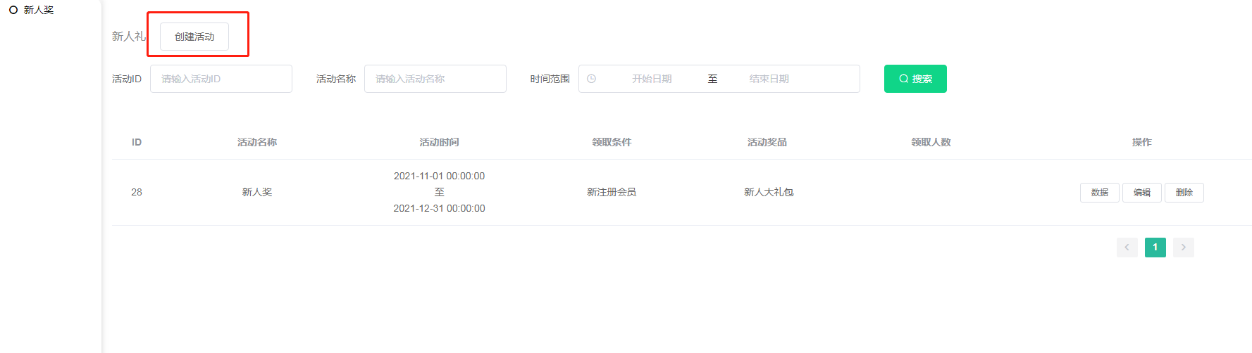 PS:同一种领取条件、同一活动时间只能创建一个活动;